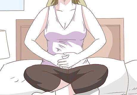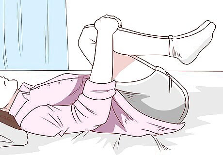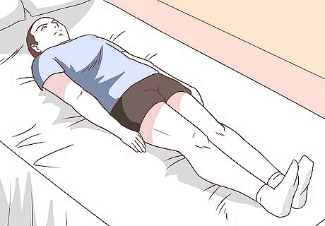 Do a child's pose for about 5 minutes. In this pose, you kneel on the bed and allow your torso to flatten over your thighs and knees. Your toes should be pointed backward. Lay your arms flat over your head and breathe deeply.