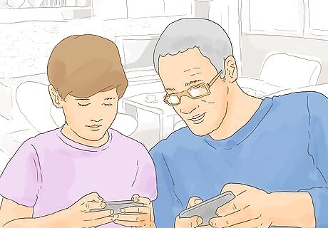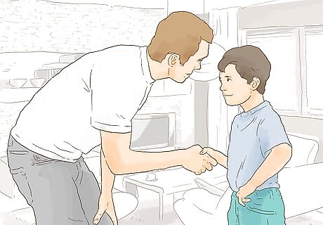 Model healthy social behaviors to young kids. You may not like the idea, but helping your child develop adequate social skills requires that you are more aware of your own social habits. Your child is watching you, and, sometimes, they pick up undesirable social skills from shy or introverted parents. To help your child pick up good habits, be more mindful of your own. Speak clearly and confidently when you address others rather than whispering or mumbling through your words. Make occasional eye contact when you are interacting with others. Greet others appropriately, depending on your relationship, whether by a firm handshake and a smile or a friendly hug.