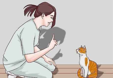 Be consistent about the tone and gestures that you use to communicate. Unlike dogs, cats aren't likely to respond to verbal commands alone, so rely on your tone, facial expressions, and hand movements to talk to your cat. If you change your tone or gestures, this can confuse the cat and make communication more difficult. When dealing with kittens, remember to exaggerate your emotions so they can easily understand when you’re reacting positively or negatively.