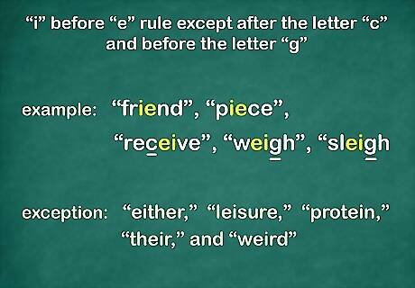 Recognize that some spelling rules have exceptions. English is a tricky language, because many of the rules have exceptions. Certain spellings simply don't follow the rules. However, knowing the rules will help you most of the time. While it helps to know the exceptions, don’t try to learn them all at once. If you absorb them gradually, they won't seem so frustrating. Your best bet is simply to memorize the spellings that don't conform to the rules.