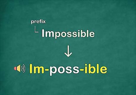 Look for a prefix to make spelling easier. A prefix is a short series of letters that can be added to the beginning of a word to change its meaning. The spelling of a prefix never changes, so just memorize its spelling. Here are the most common prefixes: Mis, as in “misspell” Dis, as in “disagree” Un, as in “unlikely” Re, as in “rewrite” Anti, as in “antifreeze” De, as in “dehydrate” Non, as in “nonsense” Fore, as in “forecast” In, as in “injustice” Im, as in “impossible” Note that most of these prefixes mean "not."