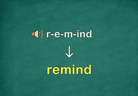 Spell out each part of the word, and then put them all together. If you know how to spell smaller words or segments within the word, such as a prefix, spell those first. Then look for common letter patterns, and sound out each segment to help you spell them. Write out the letters you hear. Check your spelling by sounding out the word. Would the spelling you’ve used sound right? For example, when spelling "remind," you could break it down into "re" and "mind." If you know how the prefix "re" is spelled, write that first. Then you just need to spell "mind." If you aren't sure how to spell it, you could sound out "mind" as "m" and "ind." Then select the letters as you hear them.