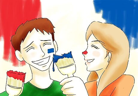 Take trips to places you've never been. Do you tend to stay in on the weekends, turning to the same favorite shows and take-out places over and over? The comfort marriage provides is nice, but it's important to add some variety, too. Taking vacations, weekend trips or even short day trips to places you've never been is a great way to spark interesting conversations and find new reasons to laugh together. Plan a trip with activities you think both of you will enjoy. If you both love wine, go wine tasting at a new winery, and buy a few bottles to take home so you'll remember what a nice time you had. If you and your spouse are adventurous types, plan a trip that takes you far from your comfort zone. For example, you could visit a country where people speak another language and have fun finding your way around a foreign city together. Or for a weekend or day trip, instead of driving to the next town over, try riding your bikes instead, or taking a rafting trip. Do something that will help you feel like a team again.