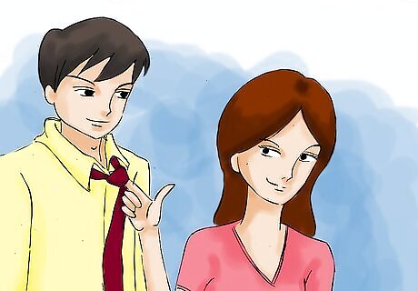 Change up your hair and clothes sometimes. This goes for woman and men! Sometimes adding spice is as easy as switching out the same old jacket for something bright and new, or wearing your hair in a different style every once in a while. Your partner will love seeing you trying something new. Wear a new shade of lipstick, get bangs, shave your beard, buy new shoes, put away that old t-shirt you wear every weekend - the possibilities are endless. For added fun, dress completely differently for a day, and act totally charming. For example, if you're a jeans kind of guy, put on dress pants and a button-down shirt with some cologne. Kiss your spouse on the neck and tell her how much you love her. You could also agree as a couple to dress as strangers - lots of couples do it! Plan on wearing interesting, sexy clothes and go separately to the same bar or hotel. When you see each other, pretend like you're meeting each other for the first time.