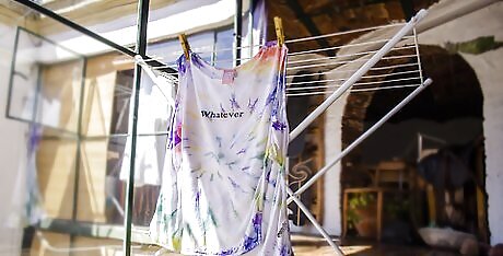 Allow the shirt to dry. Hang the shirt up in the sun or use a clothes dryer. The heat from the dryer would actually help set the dye into the fabric better, but be aware that it may also cause the shirt to shrink a little! Once the shirt is dry, it's ready to wear! If you are using a clothes dryer, you can dry the shirt with other items. The color should not transfer to other garments.
