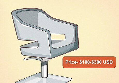 Purchase a chair, products, cutting and styling supplies, and other equipment. A salon chair is a basic requirement, and you can find one online or at a beauty supply store for $100 to $300. Purchase scissors and razors, and stock up on shampoo, conditioner, toner, hair spray, hair gel, and hair mousse. Keep in mind you’ll need to replace your product inventory regularly. Look for brand name hair products that your clients will be familiar with and trust. You can buy hair products at a beauty supply store or online. If you'll offer hair coloring and extensions, you'll need to stock up on products for these services as well.