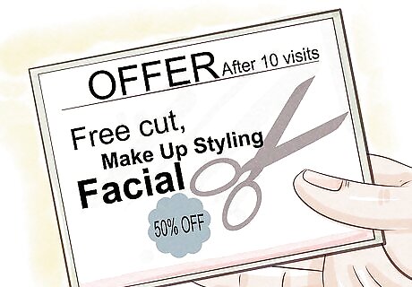 Offer a rewards program to attract loyal customers. Hand out punch cards that offer a free cut, make up styling, or facial after 10 visits. You could also offer clients points for every dollar they spend. Be sure to tell your customers about your rewards program the first time they visit. If you use a POS (point of sale) program, it might have the ability to track how much individual customers spend. If not, you could create a quick spreadsheet that tracks customer spending. List customers in the first column, enter their purchases into the next columns, and total their spending in the last column. Offer a perk when they reach a milestone, such 10 percent off their next cut when they spend $100.