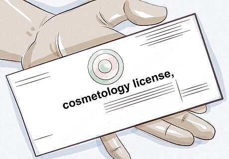 Obtain licenses, permits, and insurance required by your city, state, or province. Your requirements depend on your location, so check your local government website for information about business licenses and insurance. Additionally, you might need a cosmetology license or licenses to perform other services, such as nails or hair removal. It typically takes between 9 and 12 months to complete a cosmetology program. Specialist programs, such as nails, usually take 6 months. Other requirements might include a business owner's insurance policy (which covers general liability and commercial property), general business license, home occupation permit, sign permit, and health and safety permits. Search online for “cosmetology board” and your state or province. Your local board’s website will provide information about how to legally operate a home salon.