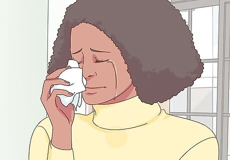 Don't be afraid to mourn. The death of a loved one is a painful, sometimes sudden occurrence that is part of life. Instead of pretending that the death never happened, acknowledge that a person you loved died, and remind yourself that life is too precious to take for granted. Mourning is a tribute to the loved one as much as it is a tribute to life. If you are religious, take solace in the teachings of your religion. Religious texts offer inspiration to believers the world over. Read about what your religion has to say about death — you might learn something you didn't know before. If you are part of a community of believers, pray and worship with them. Don't be afraid to lean on them in times of need; that's what they're there for. Cry as much as you need to. Don't feel like there's a certain way you need to behave in front of other people. You should behave the way you feel: if you feel sad, then cry. Crying makes most people feel better than they did before crying. Have a shoulder to lean on when you cry, because crying along can make you feel like you're all alone in the world, which you aren't. There are plenty of people out there who not only know what you are going through, but who love you for who you are. Public death rituals, like funerals, are important. However you choose to memorialize the death of your loved one, remember that the ritual of letting go is an important one. Rituals help us intellectually acknowledge the death of an individual, even though we might have denied this fact in our minds in the days leading up to the funeral. The public ceremony helps memorialize the deceased person, and puts us on the path of healing.