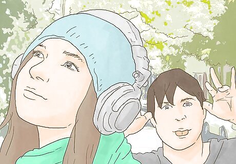 Have a buffer. If you know you’ll run into your ex somewhere (say, a restaurant or a concert), have someone with you to act as a buffer. You might invite a friend to come with you or stand next to you if you see your ex. This can help you feel protected or at least not alone. After all, there’s strength in numbers. If you suspect you might see your ex somewhere, have a friend go with you. If nothing else, they can distract you from seeing your ex or help you stay calm. Try to have an escape plan in place. For example, you and a friend could arrange a hand signal to show you are uncomfortable. Your friend could even be the one to suggest leaving if they notice that you seem distressed.