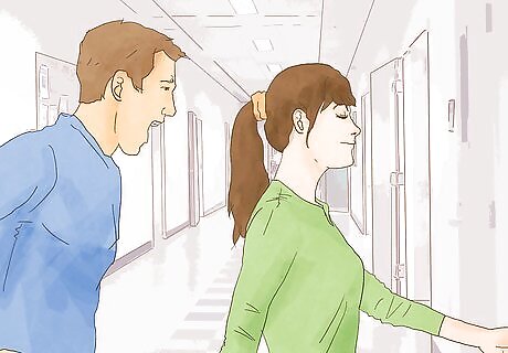 Avoid personal contact. Avoid making contact with your ex, especially at first. Try to stay clear of them as much as possible so that you don’t feel nervous or uneasy in their presence. For example, if you know they go to the library every Tuesday night, don’t stop there for a few weeks if it’s likely you’ll run into one another. There may be some situations when you can predict seeing your ex and others when you cannot. Do your best to predict their presence and steer clear if necessary.
