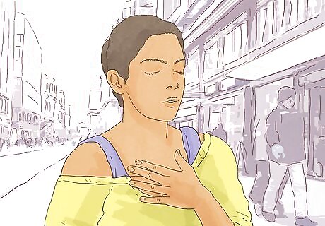 Take deep breaths. If seeing your ex fills you with panic or fear, switch your attention to your breathing. Focusing on your breath can help you calm both your mind and your body. At first, just observe your breath without wanting to change it. Then, slowly lengthen it. Count up to five on the inhale, then exhale for five seconds. Do this for several breathing cycles until you begin to feel calm. While many people count their breaths, you don’t have to. Take your breaths from your belly. It can help to put your hand on your belly to ensure that your breaths come from there and not your chest.