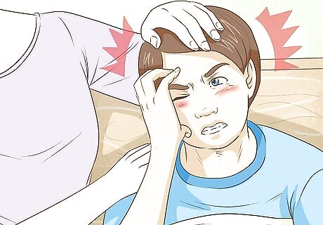 Fake a headache to avoid going to school. Faking a headache is one of the easier ways to fake sick because it’s so difficult to track whether or not a person actually has a headache. Squeeze your head with your hands in front of your parents and look down while doing so. Close your eyes when you do this to make the headache seem more real. You can also fake sensitivity to light by reacting in pain when someone opens a curtain or turns on a lamp. Make sure to go to sleep early and don’t be active.