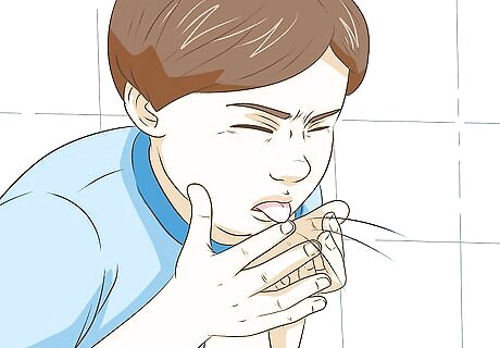 Start gagging to make it seem like you’re nauseous. Short of throwing up, gagging is a great way to convince someone that you’re not feeling well. Begin dry heaving in front of your parents and then quickly run into the bathroom and lock the door. At that point, start making it sound like you’re throwing up into the toilet and flush the toilet afterwards. Wait 5-10 minutes after you’ve faked throwing up to make it seem like you’re recovering. Then, open the door and let your parents know you need to miss school.