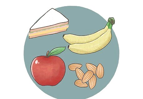 Bring snacks. Even if you eat a good meal before your trip, the smells of the food court might make you feel hungry. Bringing your own snacks will help you avoid the temptation of mall food, and a quick bite to eat can help you keep up your energy throughout your trip. Pick snacks high in nutrients for natural energy. Try bringing along a snack like bananas, apples, almonds, or even a sandwich. Skip the sugary treats. Sugar can lead to a crash later on, making you feel tired and irritable.