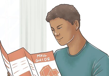 Get a map of the mall. You can usually find a map at the mall’s information center, and some malls now offer maps online. The map should include a directory of stores, as well as the locations of other areas you might want to visit, like the food court, coffee shops, or restrooms.