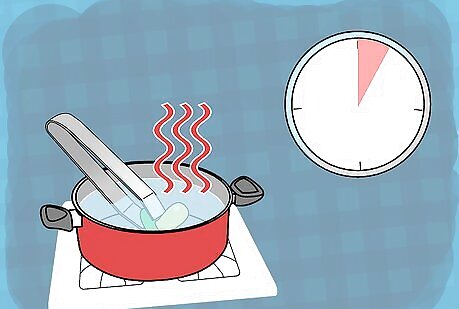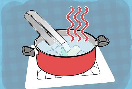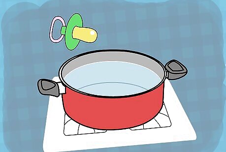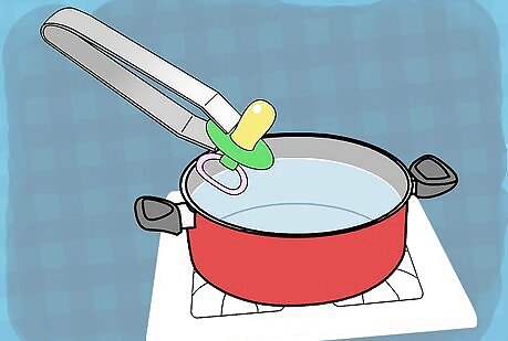 Keep the pacifier submerged in the boiling water for at least five minutes. Do not let this submersion go for longer than ten minutes.