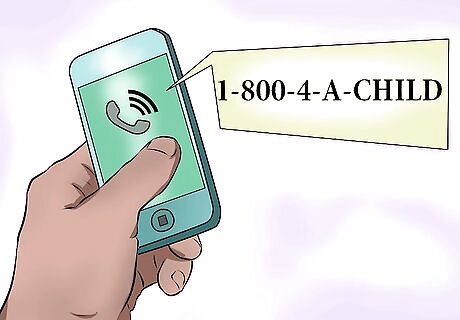 Call a helpline. There are a number of non-profit organizations dedicated to preventing abuse that offer immediate help. You can call them on the phone to be connected with a trained volunteer who can help you. Call the Childhelp National Child Abuse Hotline at 1-800-4-A-CHILD (1-800-422-4453) then push 1 to talk to a counselor. The hotline counselors are available 365 days a year to help kids, and adults who are worried about kids they suspect are being abused. You can call this number if you live in the United States, Canada, Puerto Rico, Guam or the U.S. Virgin Islands. The National Center for Missing and Exploited Children (1-800-THE-LOST) has a 24-hour a day hotline.