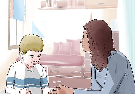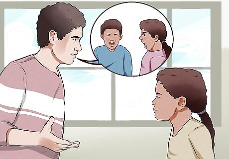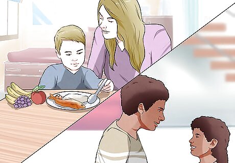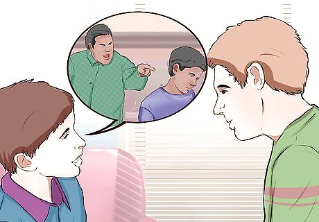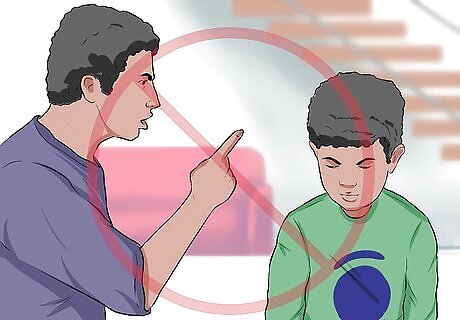 Find non-violent methods of resolving conflict. It is important to find non-violent ways to resolve your conflicts with the adult members of your household and with your child. Respond consistently and calmly to your child’s behavior. Children thrive when they understand expectations and have firm boundaries. Work on improving your communication with other adult members of your household and with your children so that you can discuss your problems rather than trying to solve them physically. Effective communication strategies can help families problem-solve and avoid the potential for abusive behavior. Don’t tolerate physical fights or name-calling between siblings or other adults in the household. Help your children express their feelings about being angry or upset. For example, you can say “You’re upset because we have to get in the car to go to school. You wish you could stay home and play longer.” Use alternatives to physical discipline such as time-outs or family conversations. Have family meetings, communicate clearly and directly, and practice active listening to improve the quality of the family relationship as a whole.