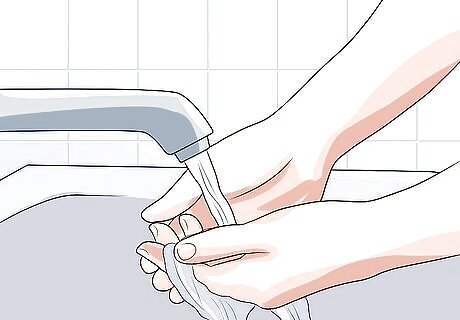 Wash your face gently. If you have a cold sore it can be awkward to wash your face. The key thing to remember is that you don't want to irritate the cold sore. Wash your face twice a day and only use mild soap. If this is irritating your sores, consider using just water. Remember to thoroughly wash your hands before you wash your face.