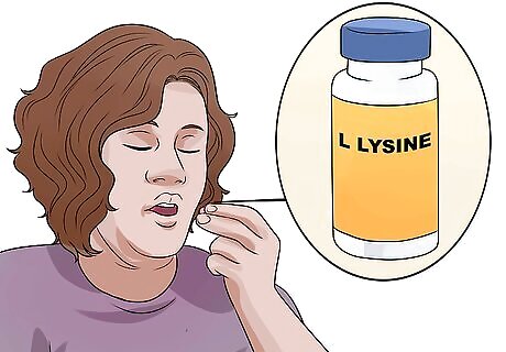 Consider natural remedies. Although natural remedies are unreliable compared to medications, there are a number of things which have been reported as helping tackle cold sores. One of these is L lysine, an amino acid that you can buy as a supplement and as a cream. Modest application to the cold sore may help. Alternatively, propolis, sometimes called synthetic beeswax, is thought to shorten the duration of a cold sore outbreak if applied to the relevant area early and frequently. A cream of rhubarb and sage has been cited as a homemade alternative to acyclovir cream. Stress has been linked to cold sore outbreaks, so lowering your levels of stress could help. A topical ointment of 1% lemon balm or 0.5% aloe can help your cold sore heal if you’re looking for a natural remedy.