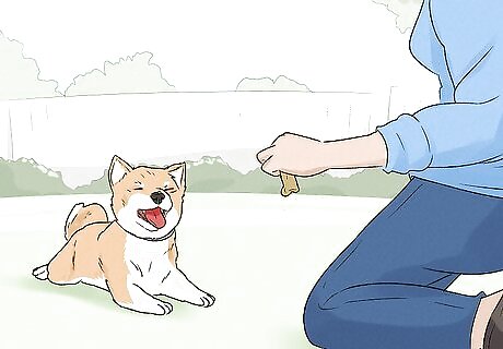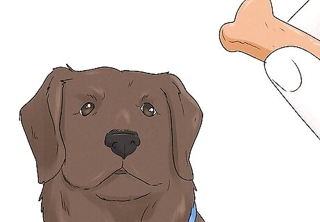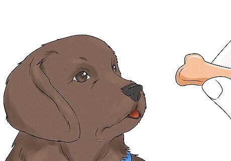 Ask your puppy to “speak,” then offer a treat when it barks. Give the “speak” command, then immediately give your puppy a delicious treat or a favorite toy. Your puppy will probably stop barking immediately, since it will be paying attention to the treat.