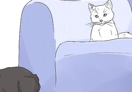 Choose an area where your cat can retreat to a safe space. When you’re ready to make the introduction, pick a room where your cat feels safe and can easily leave or move to a high place. If your cat feels cornered, it may panic, which could trigger your puppy to become overexcited and start barking. Cats tend to feel more secure when they can get up high, so choose a room where your cat can climb up onto a tall scratching tower or jump onto a shelf.
