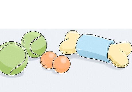 Give the puppy a distracting toy while the cat is around. Any time you have the cat and dog together, try offering your puppy a favorite toy, such as a Kong or an activity mat. This way, the puppy will focus on the toy instead of barking at the cat. Eventually, your puppy should become used to having the cat around while it plays quietly by itself. If your puppy plays with the toy instead of barking at the cat, offer plenty of praise and treats!