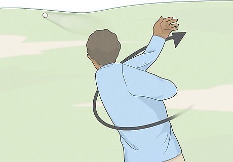 Toss the ball underhand when your hand reaches the impact zone. Release the ball in an underhand toss as if you just hit the ball with your imaginary club, straightening out your arm across your body as you do so. Watch the direction the ball flies in to assess your swing. If the ball flies forward at a right angle to your body, you’re not overswinging. If it flies out straight in front of you or slices to the left, you’re overswinging. Practice this drill until you can throw the ball forward at a right angle to your body, just like how you would want the ball to travel if you were hitting it with a club. This will help you learn how proper rotation and arm movement should feel to avoid overswinging.