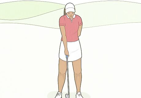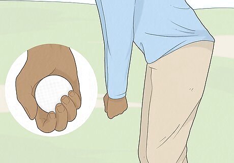 Hold a golf ball in your dominant hand. Stand in a golf stance, but don’t hold a golf club. Grab a golf ball with your dominant hand and hold it in your fist like it’s the handle of a golf club. For example, if you’re right handed, hold the ball in your right hand. This is the hand of what’s called your non-lead arm, which is the arm furthest back from your target.