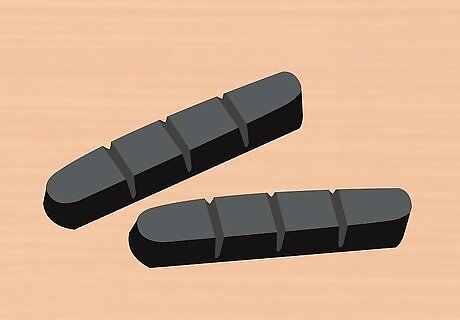 Check the brake pads for damage. Occasionally, a sharp object or a fragment of metal embeds itself in a rim brake pad. Inspect the pads carefully and pick out any foreign objects with an awl or other sharp tool. If the brake pads are worn thin, you may need to replace them. Typically, there should be at least ⁄8 inch (3.2 mm) of rubber between the clamp and the tire when the caliper is engaged to brake the bike. You can use a brake pad gauge to measure this precisely.