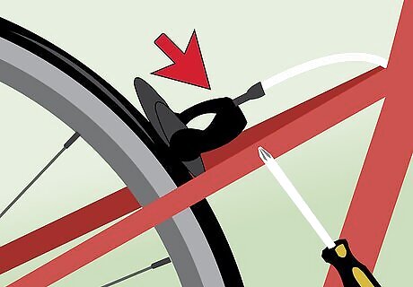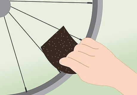 Wipe the rim with a dry cloth. V-brakes or center pull brakes press directly on the rim to stop the bike. Dirt or grease on the rims can interfere with the brake friction and cause squealing. Wipe off obvious dirt with a clean cloth.
