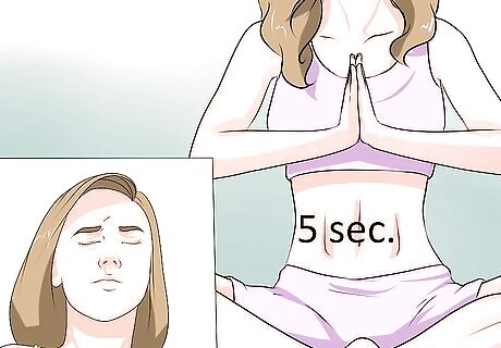 Do breathing exercises. Learn to breathe with your diaphragm, the muscle at the lower part of your lungs. Focus on your breathing and take full, deep breaths that fill the entire lung. Breathe in for 5 seconds, then hold for 5 seconds, and release for 5 seconds. Take 2 normal breaths in between each diaphragm breath, so that you do not hyperventilate and repeat the exercise until you feel calmer. Breathing signals your body to calm down. It does this by releasing neurotransmitters that tell your brain that you’re ok and safe. When you're angry, adrenaline can increase your breathing rate, making it feel as though breathing is difficult or that you can't get a full breath.