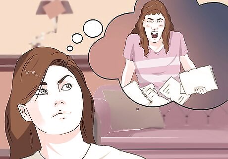 Pay attention to angry thoughts. There are many different reasons why we become angry, and anger is a normal response to frustrating situations. It's not a “bad” emotion. But, anger can lead to unwanted, and often aggressive behavior either verbally or physically. Pay attention to angry thoughts that can lead to tantrums. Try to refocus on something else, remind yourself to calm down, and know that the situation is only temporary. You may notice instant anger at situations. For example, you might get cut off in traffic and think, “I can’t believe they gave that person a license to drive!!” Angry thoughts might develop after a period of waiting. For example, if you're waiting for service in a restaurant, you may start to think, "Where is my waiter? Why is my drink still empty?"