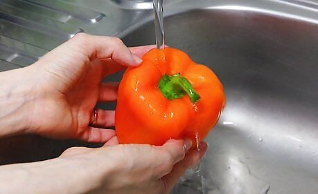 Wash peppers to remove any dirt and let them air dry. Choose fresh, ripe peppers that have no soft spots or blemishes. Rinse them under cold water and set them on a clean towel or paper towel to air dry. Ripe peppers should have a firm texture. If they are soft, then they are past their peak ripeness and no longer fresh enough for freezing.