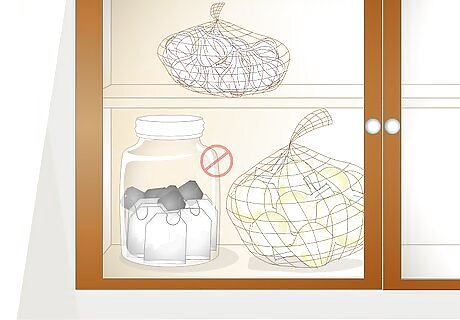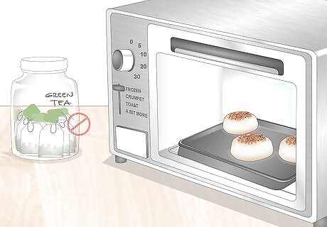 Choose a storage location away from strong smells. If you store tea next to strong smells, such as pungent foods or spices, it can pick up those scents over time. This will change the flavor and be detectable even after you brew the tea. To prevent this, keep tea in a neutral-smelling area, preferably away from other foods. For example, don't store your tea near a spice rack or close to pungent smelling foods like garlic and onions.