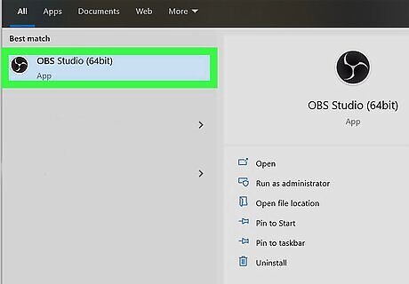 Open OBS (if it doesn't automatically open after installing). You'll find this in the Start menu or the Applications folder if it doesn't automatically open after you install it.