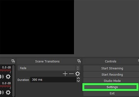 Go to Settings in OBS. You'll see this in the lower right corner of your screen under the "Controls" header.