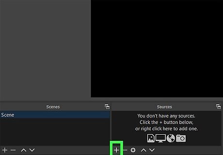 Add your sources to your scenes. Click the plus sign + in the "Sources" panel when you have a scene selected, and you'll trigger a menu to pop-up at your cursor. Add the sources you need to your scene by clicking the plus icon +. Click Video Capture Device or Audio Input Capture then OK. Those are the most commonly used sources, but as you have more equipment, you could have multiple sources.