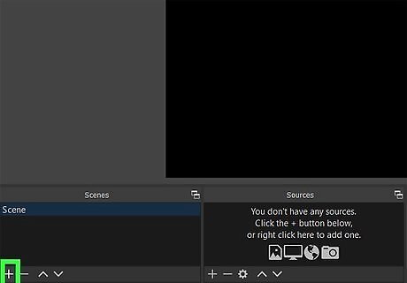 Add your scenes. Click the plus sign + in the "Scenes" panel to get a new window. Name the scene and click Save. You might want to name it something you'll easily recognize, like "Webcam Capture" or "Logitech Video". Add as many scenes as you need; you can always add a scene that consists of an "I'll be right back" image or GIF that you can throw up on the screen when you're away from your computer.