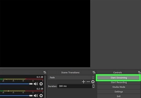Click Start Streaming. Once you have your YouTube credentials entered and you're connected to your account, you'll be able to stream to YouTube from OBS on your computer. Click Stop Streaming when you're done streaming.