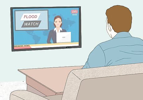 Listen to the news for flood risk warnings. Flooding information can be found on your local news or weather station’s TV channel or website. Tune in to monitor changes in the weather. Also, listen to local radio stations for periodic updates. A flood watch means that flooding may happen in your area. A flood warning means flooding is happening or will occur soon.