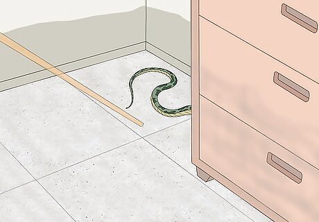 Use a stick to check for snakes. Dangerous animals may have washed into your home or taken shelter there. Overturn hidden areas with a stick or pole as you search for damage. The last thing you need is to have a pet or family member bitten by a snake. Have an animal control specialist come help remove them.