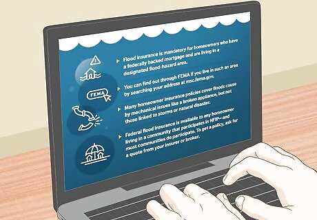 Insure your house against flooding. Flood insurance can save you a lot of hassle if your home or business is damaged. Check with your insurance company for policy details. If you are in a high-risk area for floods, you should be insured. People in other areas may choose flood insurance to protect against water damage.