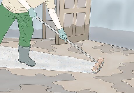 Clean your home. Mud and water that washed into your home can contain sewage and dangerous chemicals. In addition, leftover water leads to mold. Open up all the door and windows. Scrub affected areas with hot water and a cleaner like a heavy-duty laundry or dish detergent. Follow up by disinfecting with a 10% bleach and water solution. Wash your hands after cleaning. Fans are useful for blowing air out of your home or drying out hidden areas like corners.