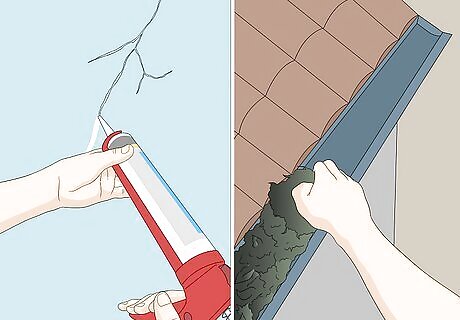 Barricade your home against floodwater. Sealing your basement makes it more resistant to water. Fill in cracks and spread sealant over the walls. Keep the gutters on your house clean, too. Levees and floodwalls may also be built to help hold back floodwater. Install a sump pump. When the pump senses water on the floor, it pumps it out of your home. Make sure the pump drains properly and maintain its battery-powered backup with fresh batteries.