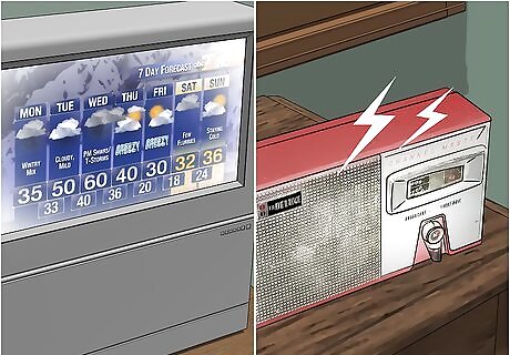 Watch the local news. Some storms arrive suddenly, but usually the local weather team can give you some warning that there is a chance of a storm. In addition, during a storm, the radio can give you information on storm intensity, storm tracking and other emergency information.