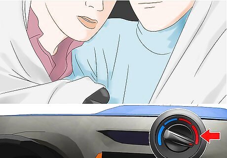 Keep warm and dry. Keep the windows rolled up or the tent flap closed while you're inside. Wrap your coat, blanket, tarp, or any other type of material you have with you around your body to stay warm and to prevent frostbite. If you're with another person, use each other's body heat, too. If you're out in the wilderness, build a fire close by to keep warm and serve as a signal to attract attention. If you're in the car, let the engine run with the heat on to stay warm. However, it's very important that you don't keep the engine running if the exhaust pipe clogs with snow; this could lead to carbon monoxide poisoning, which is deadly.