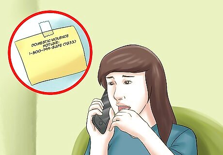 Protect yourself. If you're in danger, get out of the house and get to a safe location. If you're in immediate danger, call the authorities now, or contact a domestic abuse center in your area. To find one locally in the United States, call the Domestic Violence Hotline: 1-800-799-SAFE (7233) Depending on your physical, mental, or emotional state, you may wish to go to the hospital or a safe house for people who have survived domestic abuse, to assess the situation and plan your next steps. The location of a safe house is kept a secret, and they may be able to send a car to pick you up if you can't make it there yourself. They provide food, donated clothing, shelter, a bed to sleep in, and services to help you get reestablished, such as obtaining welfare and setting up housing, and have counseling services available. You might also elect to go immediately to the local police station, the home of a trusted friend or relative, or to any open, safe, public place like as a shopping mall, big box store, or restaurant. Be sure not to tell your abuser where you are going or they may follow you. If you have no transportation, find somewhere safe to hide in the neighborhood. Go to a neighbor's house, climb a tree, hide behind the garbage cans, hunker down in a ditch. Do whatever you need to to protect yourself the best you can.
