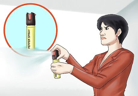 Keep pepper spray on you. Hide this in a bag or purse and know where it is in the house at all times. If things get out of hand, spray and run for safety. Don't look back or second-guess your decision. Remind yourself that protecting yourself and your children (if applicable) is the number one priority. Practice how to use the pepper spray so you know what to do right away if you ever need it for real.